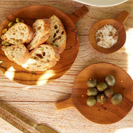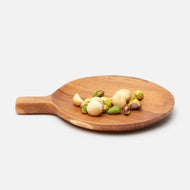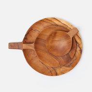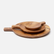 Round-handled teak platters are weighted to perfection with a texture that makes any table come alive. This three-piece set appeals to a wide range of uses and is sure to be a show stopper. Natural variation to be expected.